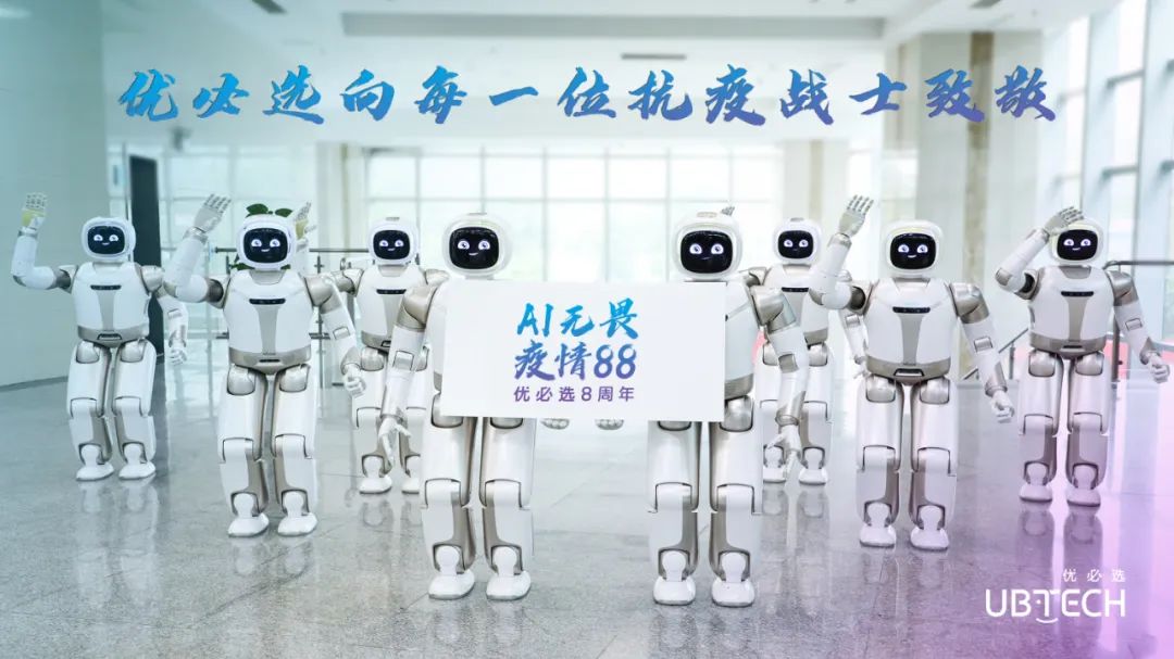 在这场特别的“云庆祝”上,优必选人联合机器人和抗疫战士,向世界喊出彼此的祝福: