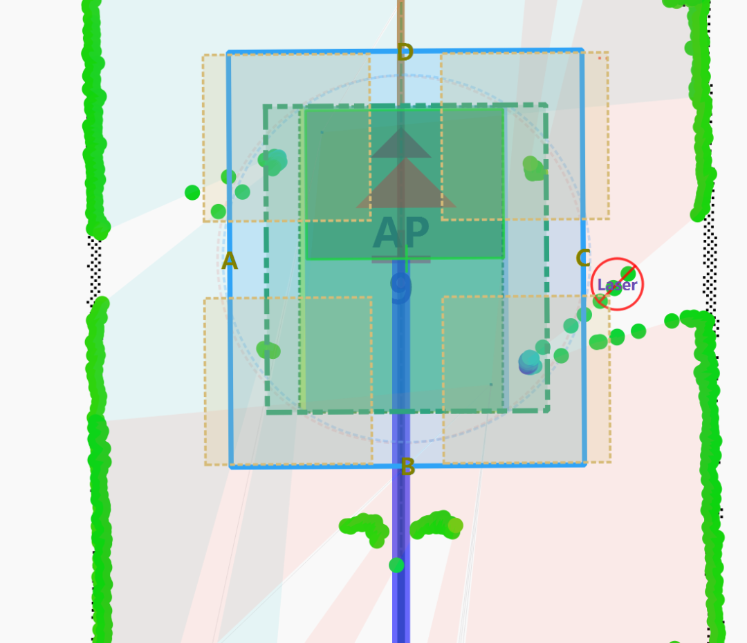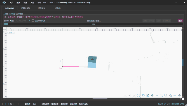 完成 nanoScan3 的接入后即可开始SLAM 建图,我们采用常规的建图方式,即绕现场环境兜一圈使地图形成闭环,过程如下: