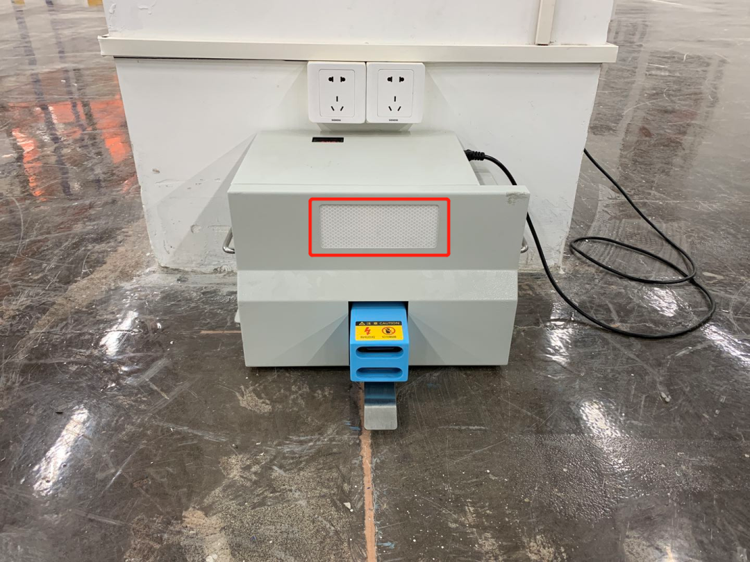 反光物体测试使用仙知专用充电桩进行测试,主要测试在不同距离下nanoScan3 得到的反射率是否稳定,下图红框中即为 3M 反光条,长度为 18cm。