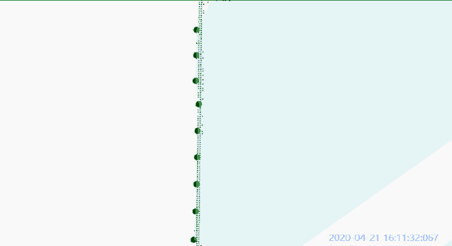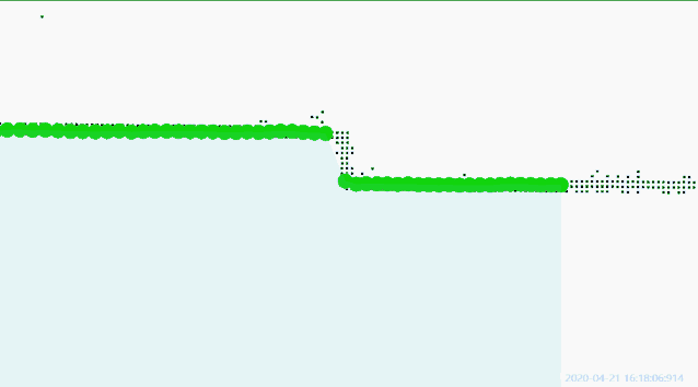 上图中红色的激光点比绿色的激光点反射率高,说明激光检测到了条状的反光物,并且反光物呈直线,没有出现变形和噪点。