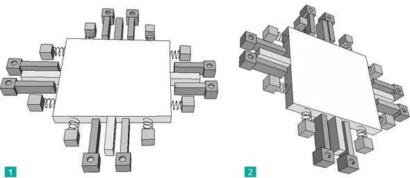 图2:MEMS传感器的位置(1、处于水平位置的MEMS传感器;2、处于倾斜位置的MEMS传感器)