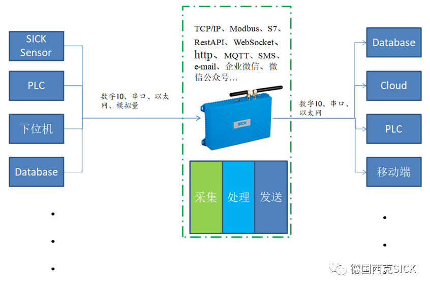 SICK作为智能传感器的行业领导者,也是工业4.0标准的带头者,根据客户的需求,推出了TDC系列的产品,TDC整合和传感器技术、互联网技术、无线通讯技术、云计算技术等多项前沿科技,致力于网关与云端解决方案,帮助设备制造厂商由单纯“设备制造商”向“设备整体解决方案”转变;由单纯“卖设备”向“卖服务”转变;由“卖出即结束管理”向“全生命周期管理”转变。加快工厂信息自动化进程,将企业管理、决策、市场信息和现场监控信息结合起来,实现ERP、MES、PCS三层信息一体化的解决方案。