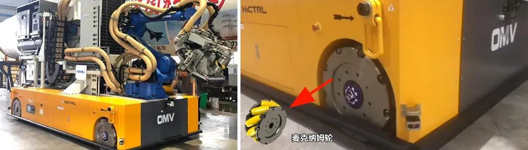激光导航OMV配备4个独立的麦克纳姆轮,能满足前进、后退、自转、横移、任意角度斜行等全方位移动,运行速度最大1m/s,能越过高度差为10mm的障碍,能通过30mm宽的沟槽。OMV装备有激光导航系统,能根据设定的行驶路径自动导引到指定工作点打磨,重复定位误差为±20 毫米。