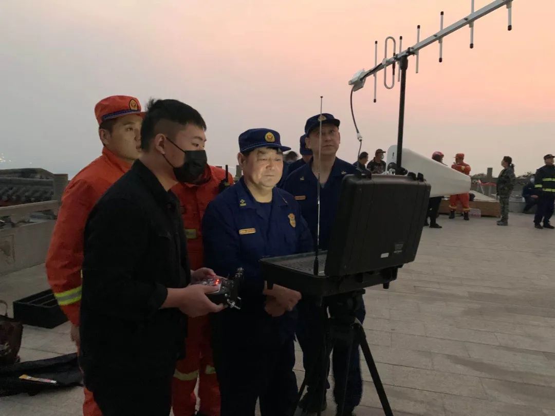 光福寺指挥中心观看无人机实时回传画面