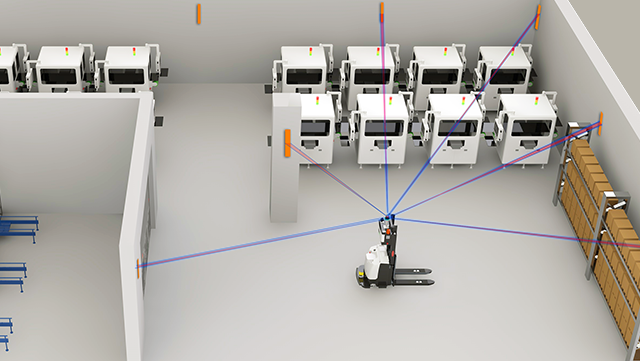 无需二维码、反射板等辅助导航标志,而是通过工作场景的自然环境(比如柱子、墙面等)作为参照物,实现定位导航。