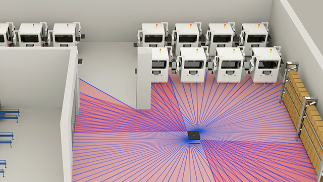 迦智激光导航融合了各类导航技术优势,在运行过程中可根据需要随时自主切换导航方式,自动穿梭在不同生产环境和工序之间,实现用户毫米级高精定位需求的同时,大大提高了AGV的运行范围和稳定性。