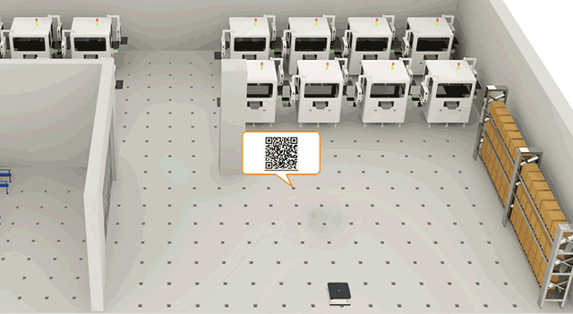 由二维码替代磁钉的导航方式,典型应用为亚马逊kiva机器人,实现了“货到人”的拣选模式。