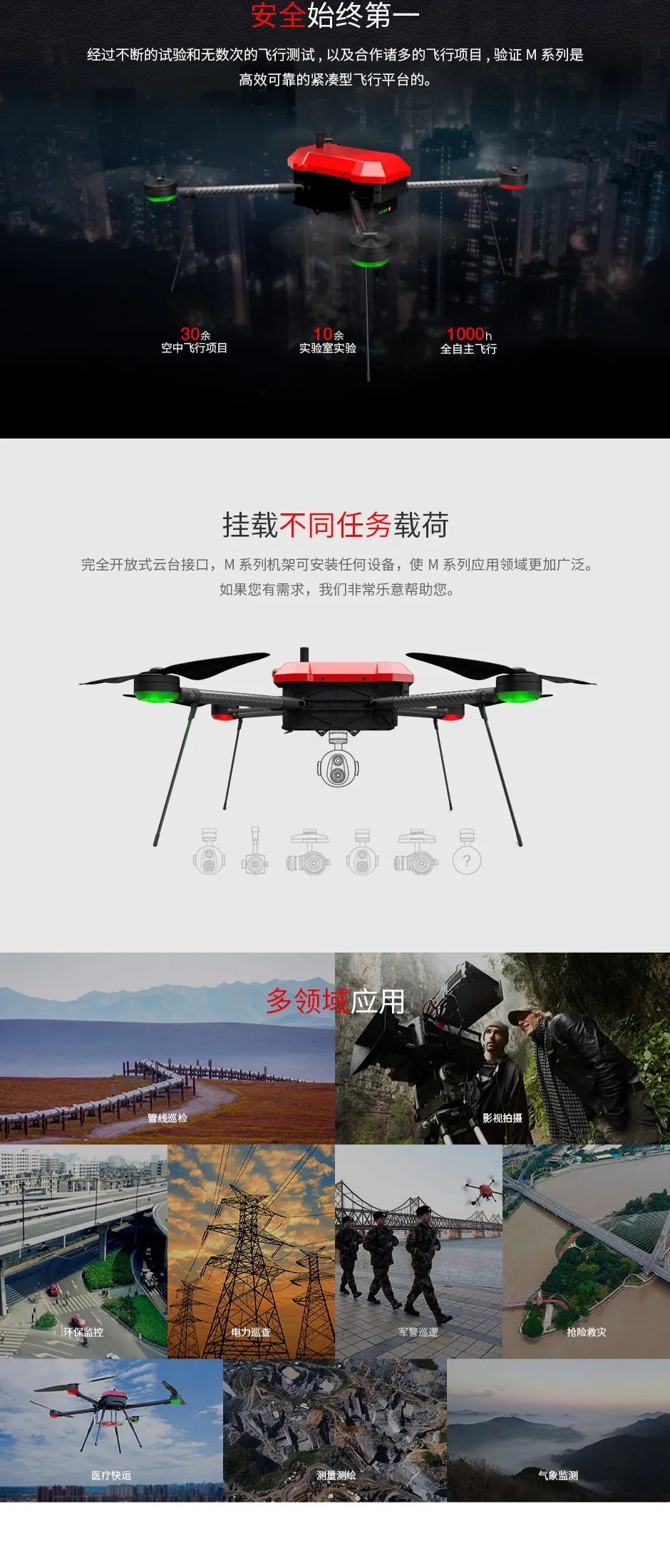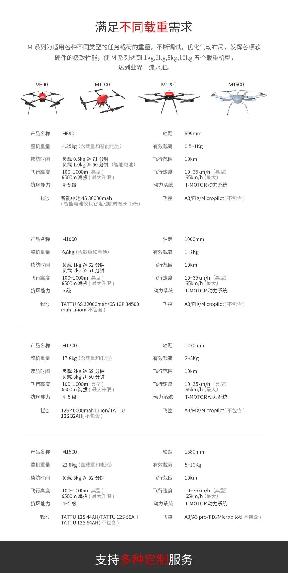 TMOTOR长航时飞行平台目前包括M690、M1000、M1200、M1500四个机型,并支持多种定制服务。