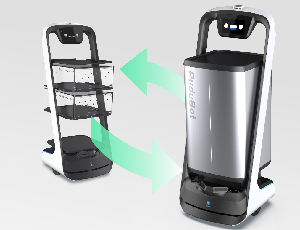 此前,普渡科技已推出“欢乐送BOX”封闭式送餐机器人,在原先开放式结构上,进一步增强了“无接触”配送的安全性。从厨房到餐桌,全程仅有后厨员工将餐品放入,及顾客取出两个过程需打开箱体,整个配送过做到了完全的封闭式配送。