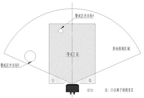 自定义避障模式是专门为AGV避障应用开发的模式。如图5所示,该模式下,CE30 将会为AGV筛选出最关键的避障目标,也就是警戒区内目标A,将此目标的距离信息提供给AGV。可根据客户需求定制避障区域。