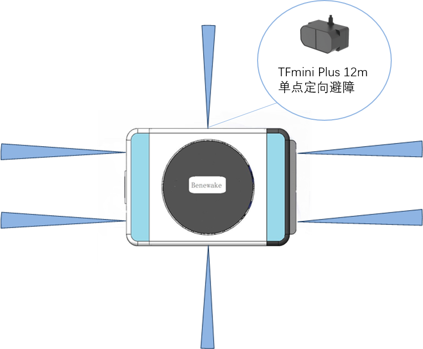 北醒TF系列单点激光雷达避障模块是基于ToF(Time of Flight时间飞行原理)的激光测距技术,用于0.1m-12m近距离的障碍物探测与避障功能。原理和使用方法都比较简单,雷达输出最近障碍物的距离值,从而指导系统进行刹车或减速的指令,是移动机器人/AGV近距离低矮障碍物探测的低成本首选可靠方案。