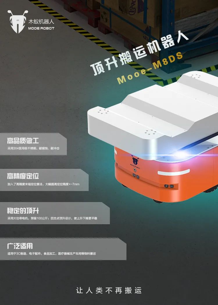 Mooe-M8DS刚刚“诞生”,就已有医疗行业客户采购数台,在后期的推文中,小编会隆重分析顶升搬运机器人在医疗行业场景下完美运作。