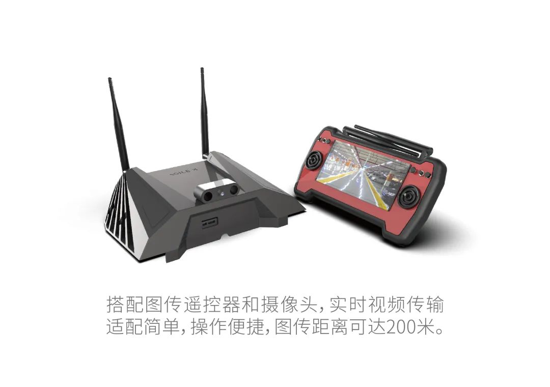 可搭配图传遥控器和摄像头,实时视频传输适配简单,操作便捷,图传距离可达200米。