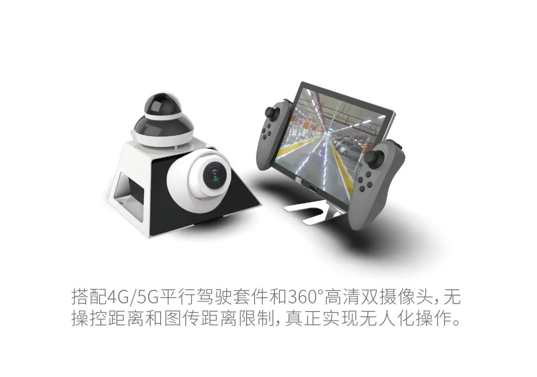 搭配4G/5G平行驾驶套件和360°高清双摄像头,无操控距离和图传距离限制,真正实现无人化操作。可在医院、社区、商场、停车场、办公园区、工业园区等场景使用。