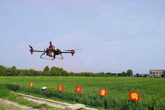 如果人工打100亩地(农药)的话,像这种小麦,估计要得3-4个人打一天,如果用植保无人机的话,1-2个小时就能完成作业,如果是大面积发生的病虫害的话,它可以用多架无人机同时作业,保证了一天的时间可以把1000亩、2000亩的面积作业完,而且它全自主飞行,喷洒均匀,不重喷,也不漏喷,这是它的特点。