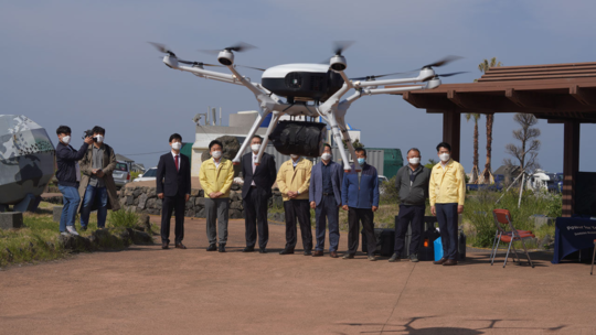 【海外网4月17日|战疫全时区】目前,韩国实行口罩实名限购制度,市民须在药店、邮局等定点机构,购买政府发售的口罩。然而,济州岛周边的一些附属岛屿,虽然有人居住,却没有药店和邮局,令居民买口罩成为难题。于是,当地政府便想出了用无人机送口罩的对策。