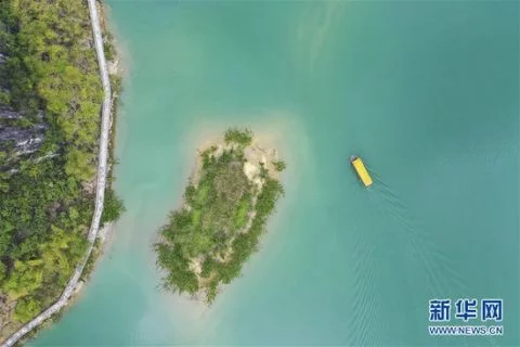 这是4月16日拍摄的广西凌云县浩坤湖景色(无人机照片)。浩坤湖位于广西百色市凌云县境内,湖中岛屿星罗棋布。时值春季,浩坤湖碧波荡漾,风光旖旎。新华社记者 周华 摄