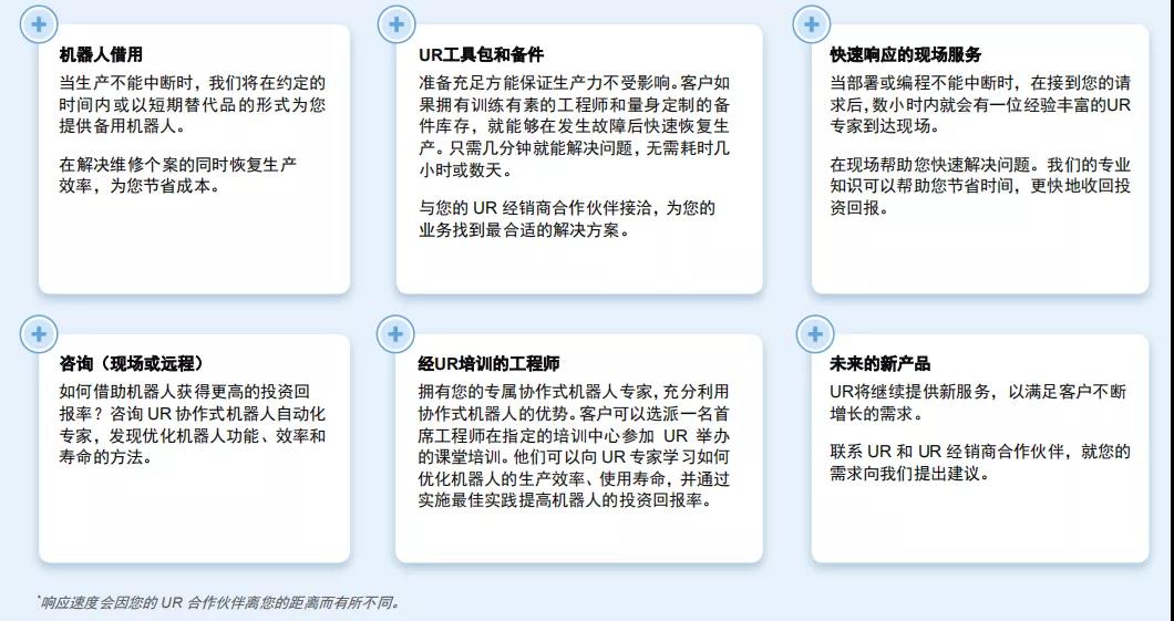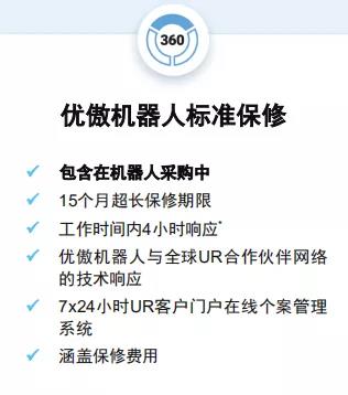 所有在售的UR Service360品牌产品均由UR高级工程师与您当地的UR经销商合作伙伴配合完成,以充分发挥机器人性能。