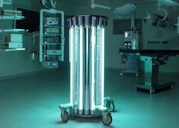 自1972年成立以来,Skytron就生产了一系列的紫外线消毒机器人,这些机器人看起来就像是有人在轮式手推车上垂直排列一束光管。