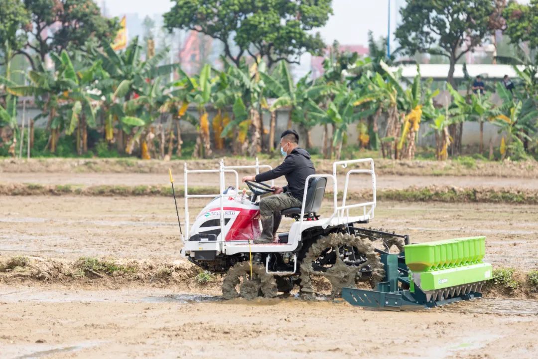 直播机械深陷泥田“使用极飞农业无人机飞播精准、高效,可以节省大量时间,不会出现像机械直播深陷泥田不能前进、耽误作业的情况。”
