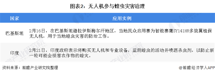 2月底新冠疫情在全球蔓延,其中韩国、意大利以及伊朗等国的疫情较为严重,与此同时,蝗虫灾害也由非洲蔓延至东南亚地区,给全球的生产发展和人民生活带来了重大的影响。在此期间,巴基斯坦、印度等国采用无人机参与蝗虫灾害治理,取得较好的效果。