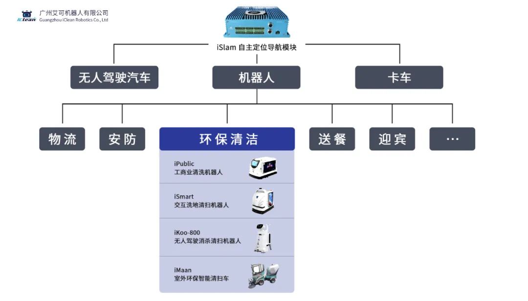 横向以iSlam为核心解决方案,纵向深耕环保清洁消毒机器人家族