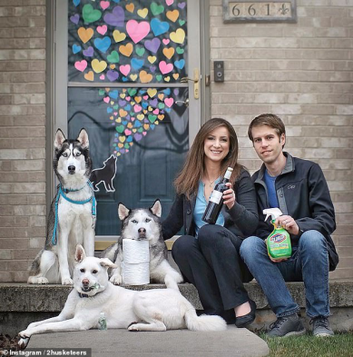 凯特琳,乔纳森和他们的三只狗拍摄了他们如何应对疫情封锁