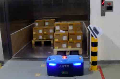 作为如今市场上较为流行的明星产品——AGV小车,生产厂商不断增多,各种类型的车辆不断被研发出来,应用于多种场景之中,物流、电商、制造、烟草、家电等行业,逐步扩展,不断开发新的应用场景,扩大市场。AGV小车不仅可以在仓库、工厂里穿梭、搬运,现如今还可以跨楼层进行运输货物。从货物摆放区将物料搬运至产线上,此过程中,就算是需要乘坐电梯,AGV机器人也可以高效地完成任务,靠近电梯时,只需发送乘坐电梯的信号来进行通讯,电梯接收后便会打开电梯门,AGV叉车将货物搬运至电梯内放下后出电梯,之后由电梯运输至指定楼层,这时会有另一台AGV叉车来交接、搬运、运输。运输中,如遇到障碍物,AGV叉车会停下并避开,自动选择导航路径,将货物运输至放置区,大幅度提高工作效率,降低人工成本,减少出错率。