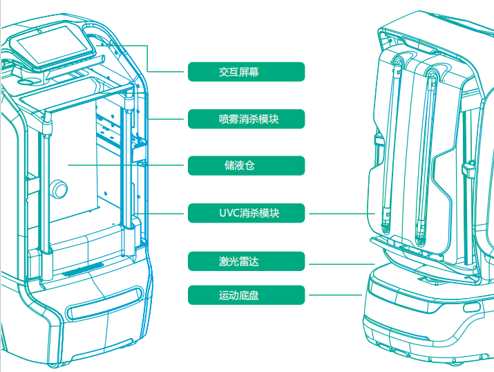 智能AGV消毒机器人主要作用是替代人工消毒,降低人工成本,避免人交叉感染等事务。目前,动进第一台新研制的智能AGV消毒机器人是以AGV小车为载体,集成消毒装置,且采用激光雷达技术建图导航,使用紫外灯照射消毒、超干雾化消毒两种消毒方式进行消毒作业,可实现6log消毒效果,是医院、学校、机场、车站、写字楼室内进行消毒防疫的很好选择。动进智能消毒机器人能够边移动边消毒,并且按照一定的行驶速度进行均匀、全面、彻底消毒杀菌,保障人员安全。