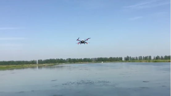 除了种子与肥料颗粒,农业无人机还被使用在了鱼塘、虾稻田中,用来投喂饲料。