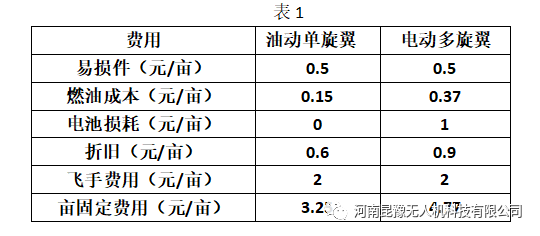 | 费用 | 油动单旋翼 | 电动多旋翼 |