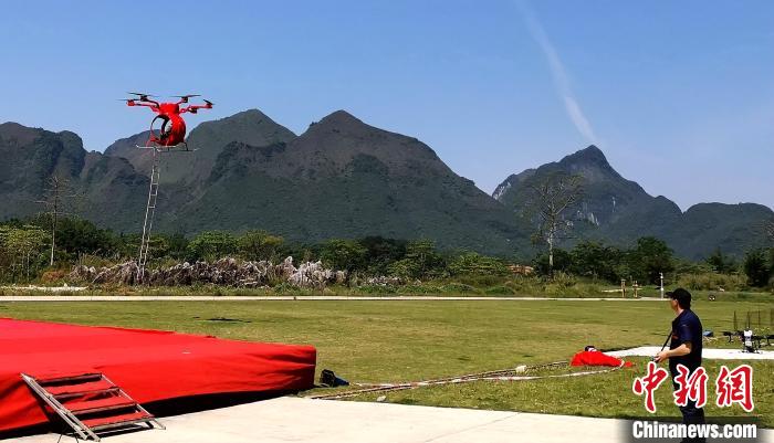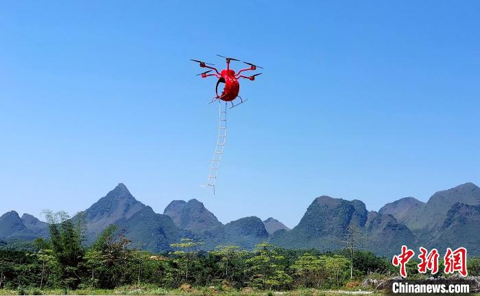 广西壮志雄心科技发展有限公司首飞载人无人机在投放救生软梯。 高东风 摄