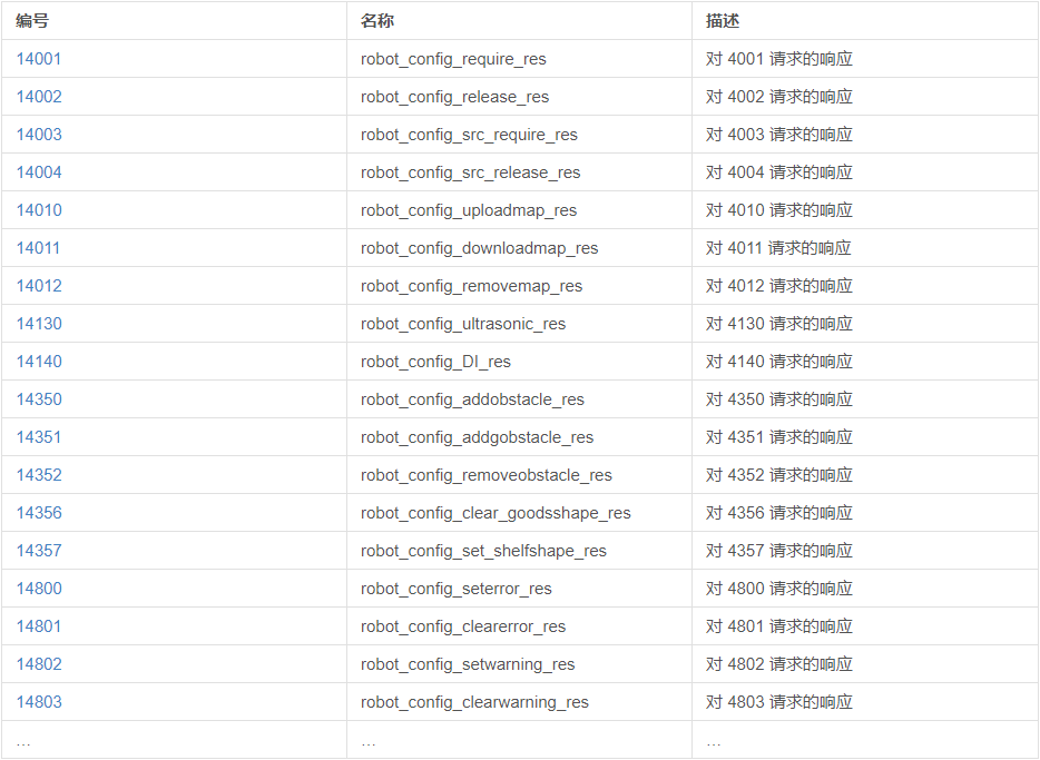 之前分别介绍了机器人导航API—圆弧运动及托盘旋转、指定路径导航、清除指定路径导航、执行预存任务链等,本期将介绍“机器人配置API”,包括“API列表”、“回收控制权”、“释放控制权”及“SRC获得控制”“SRC释放控制”: