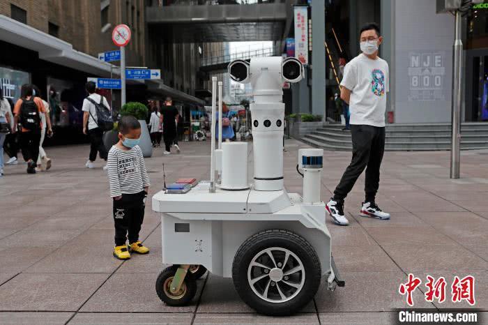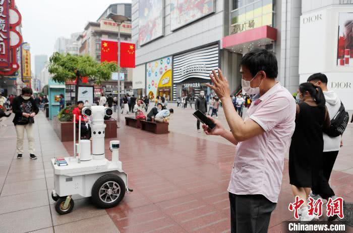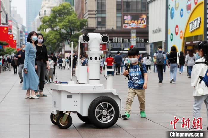 “我是上海黄浦公安巡逻机器人,正在执行值守工作,请注意自身安全,保管好财物,照看好老人与小孩,防止走失。”5月1日,机器人“瓦力”重新回到南京东路步行街上巡逻,在行进过程中,“瓦力”不时响起语音播报,提醒游客注意人身和财物安全,避免上当受骗。遇到周围一米内有障碍物,机器人可利用自身的3D红外热成像仪,识别后自动停止前进,行进到大客流区域,还会停下来让行人先走。