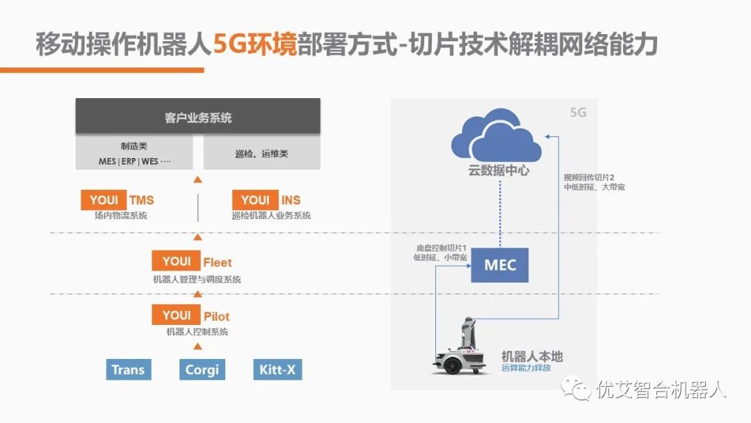 高清摄像头和机器人底盘可以分别通过定制化的网络切片接入