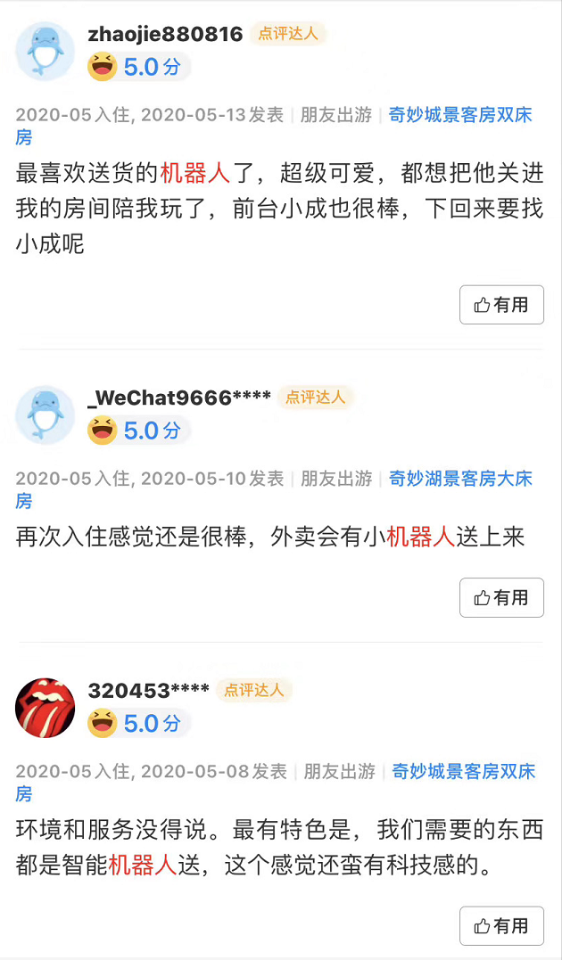 惊喜、便捷的智能服务,不仅为酒店增加了新的“标签”,进一步提升了品牌辨识度。同时,又拉近了客人与酒店的距离。萌萌哒的机器人,为酒店赢得了满满好评,