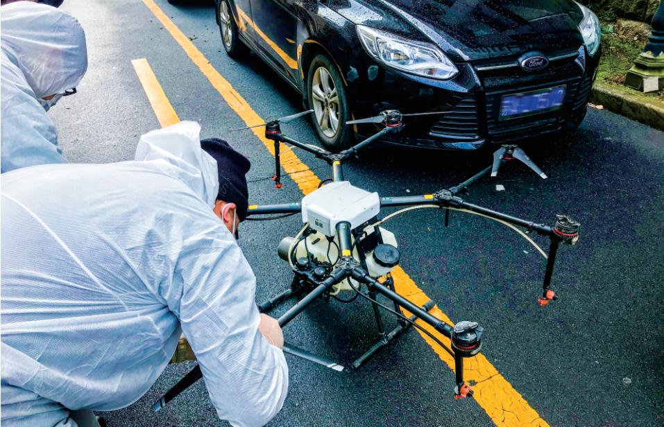 在平台撮合下,一场“庄稼卫士”变身“防疫能手”的大幕拉开。很多原来应用于农业的植保无人机摇身一变,挂起消毒水,在空中开展防疫作业。