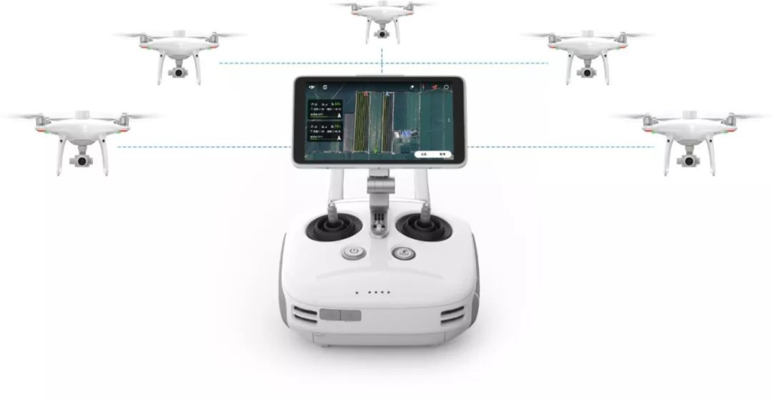 基于先进的多机集群管理功能,使用「大区分割」进行「一控多机」作业时,飞行器会自动相互同步自身位置,各飞机会按照设定的任务“各司其职”,完全无需担心飞机之间发生碰撞。精灵 4 RTK 遥控器自带RTK广播功能,在一控多机模式下,每台无人机都能收到精准的RTK定位信息。
