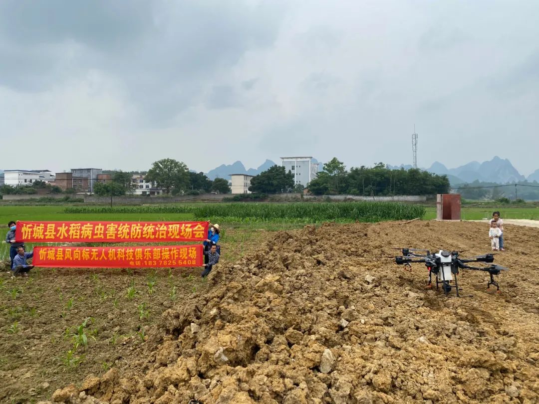 据悉,忻城县风向标无人机公司拥有的这一台植保无人机是忻城的第一台无人机。今天,在古蓬镇龙利村开展水稻大田第一次病虫害防治现场展示,共有十多亩水稻田病虫害通过植保无人机进行稻飞虱、稻纵卷叶螟、三化螟防治。在现场观看的农民朋友纷纷称赞用植保无人机“飞防”省工、省药、防治及时,真是农民的好帮手!