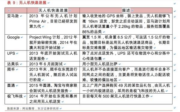 随着大疆等几千元高性能无人机的推出,无人机快递可以大大降低“最后十公里”的物流成本: