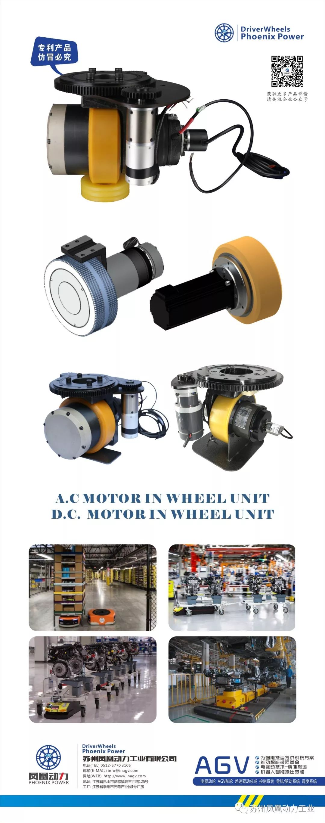 配置了PhoenixPower@DriverWheels【凤凰动力】电驱动-舵轮可实现零回转半径、侧移、全方位无死角任意漂移。可实现二维平面内的任意方向的移动功能,包括直行、横行、斜行、任意曲线移动、原地360°等全向移动形式。整体性能优于传统其他结构形式的AGV小车,【凤凰动力】舵轮AGV小车解决方案结构简单,控制简易,便于维护,寿命更长。