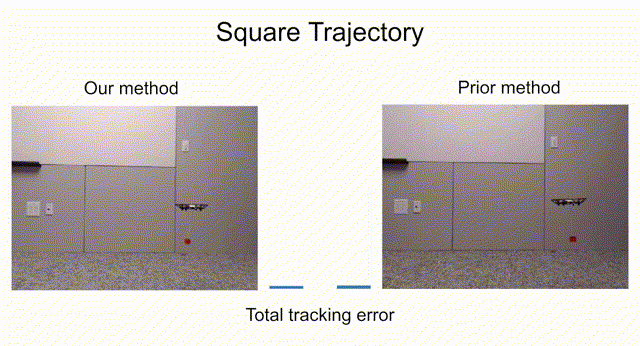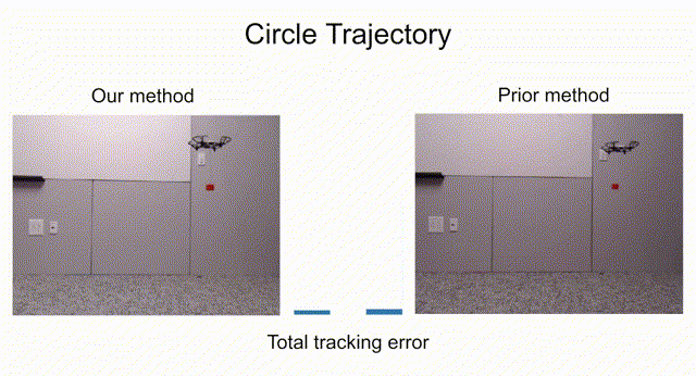 研究人员还在设定方形飞行轨迹和圆形飞行轨迹的情况下进行了演示,并对比了元学习算法模型和其他模型。结果显示,元学习算法模型的路线错误更少。