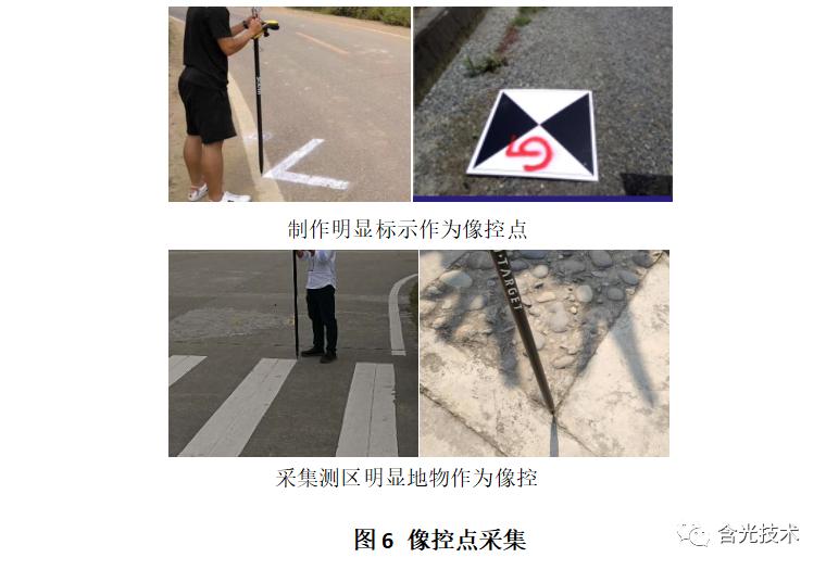 像控布设需囊括测区并均匀分布,携带网络RTK功能及ppk功能无人机可根据实际情况减少50%-80%像控;像控布设以遵循标注清晰、视野开阔、均匀分布、覆盖测区、像控位置固定、像控布设在无高差平面上为原则;以外业无人机能清晰明显拍摄,内业能容易准确找到为标准。航测区域及对应像控布设如图5所示(如玉溪师范学院);像控点采集如图6所示: