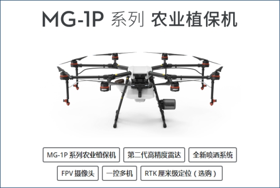 MG-1P系列植保无人机是2017年底发布的专门服务于农作物保护的特种机型,采用八轴旋翼,载重高达惊人的24.8 kg,其标配的作业箱容积为10L,搭配定位测绘用的MG-1P RTK 版,每小时可以作业90亩。对,这就是传说中的大疆农药喷洒机。