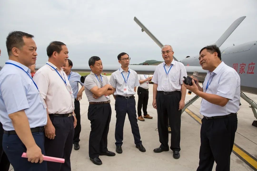 ▲参加彩虹四无人机首飞仪式的领导和嘉宾合影