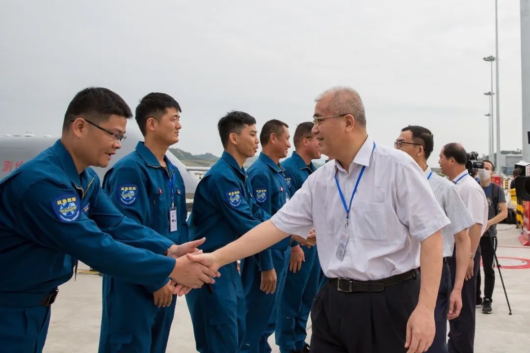 ▲陈建军亲切慰问彩虹四无人机机组工作人员