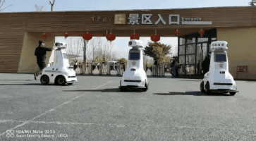 △ 小巡为贵州省贵阳市公安局南明分局在贵阳筑城广场执行安保巡逻任务,助力南明分局警务大数据建设。小巡发现警务黑名单人员及违规停放的车辆时,将发出警报。