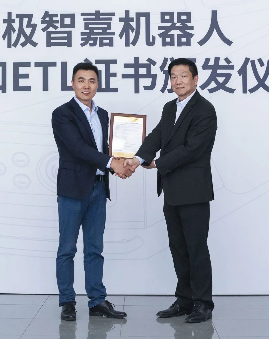 左起依次为:极智嘉联合创始人兼CTO李洪波、Intertek电气与网络保障总经理金志斌