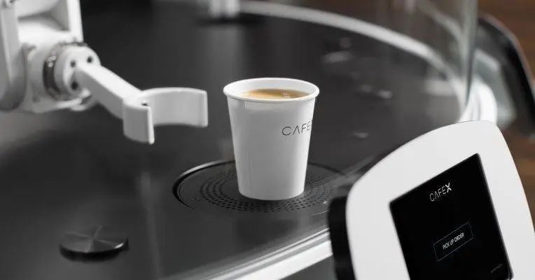 作为智能机器人,它究竟有多少技术含量?机器人咖啡亭的扣盖,背后是一套“柔性生产系统”。无论是透明塑料冷饮杯,还是热饮纸杯,它都可以变化力度、角度,准确扣盖。其原理,是用了混合传感器,由传感器提供不同杯子的具体数据,后台再计算每一次扣盖的压力、角度,扣完之后还有传感器回传数据进行检查,保证严丝合缝。如此,才能做到灵活给各种杯子扣盖。