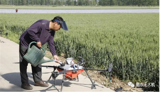 农技人员给植保无人机添加农药